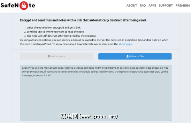 SafeNote是自毁应用程序的新手,而且它已经做好了一切。与其他所有应用程序一样,它会加密您编写的任何便笺或上传的任何文件。然后,它会创建一个链接,您可以与收件人共享该链接。