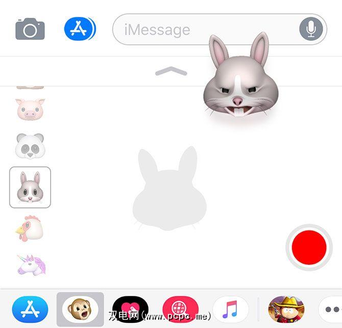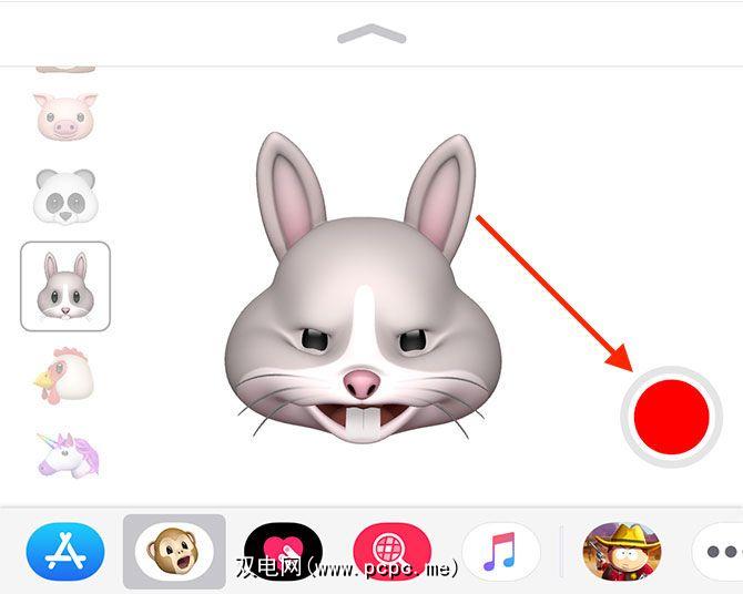 现在您将看到所选的表情符号在中间,左侧有一个选择器,您可以切换到另一个。排练您的消息或动画,然后在准备就绪时可以点击红色的 Record 按钮以获取最多10秒钟的动画。如果您早点按下“录制"按钮,则会创建一个较短的视频。