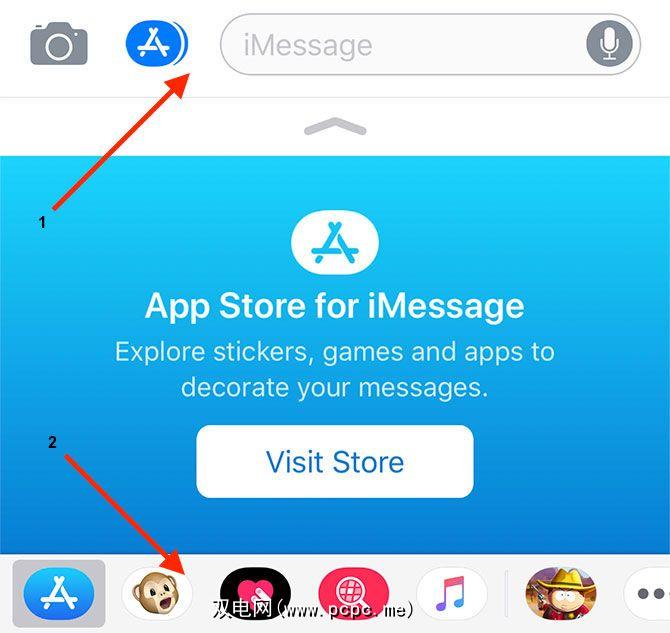 要发送Animoji,请打开“消息"并开始聊天。点击 App Store 图标以启动iMessage应用程序界面,然后在屏幕底部查找“ screaming monkey"图标: