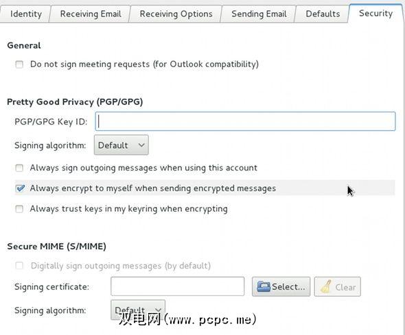 要开始使用,请打开Evolution并在“编辑"菜单中转到“首选项"。双击要启用PGP安全性的帐户,然后转到“安全性"选项卡。您可以在其中输入密钥集的密钥ID,以便Evolution在使用特定电子邮件地址书写时知道要抓住哪个密钥。请记住,同一密钥上可以有多个电子邮件地址,建议您避免混淆。理想情况下,一个人应该使用一个或两个键,如果他们想要将个人与业务分开。如果您愿意,还可以在下面设置默认值,无论是否要每次启用某些选项以编写新消息。