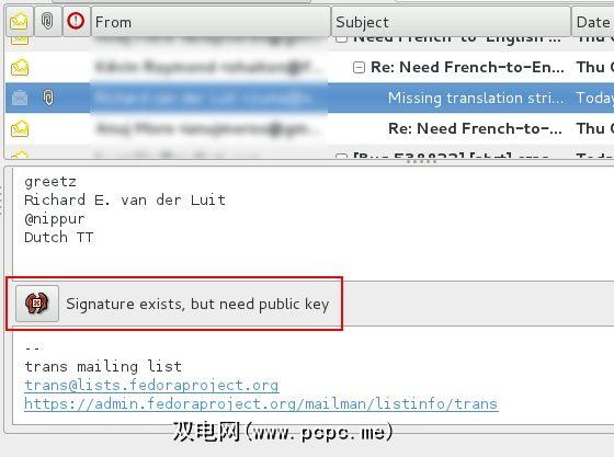 您会看到如上的消息(“签名存在,但需要公共密钥"),这意味着该消息已签名,但您尚未导入发送该消息的人的公共密钥。可以在处理密钥的程序中完成此操作。