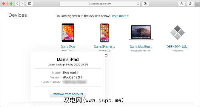 登录后,请转到设备部分以查看所有列表您的Apple设备。选择设备(iPhone,iPad,Mac等)以查看有关它的详细信息,包括序列号。