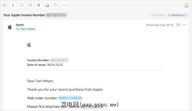 找到随附的Apple发票后,阅读小字体以找到序列号。