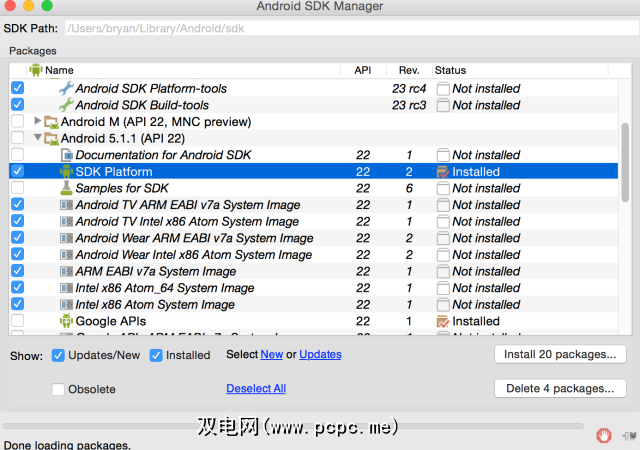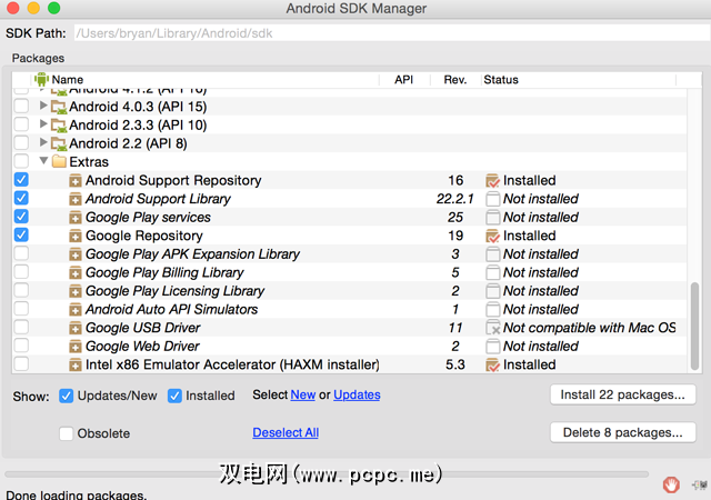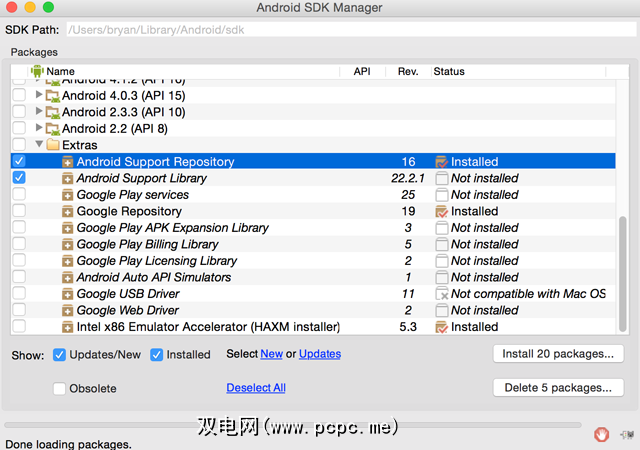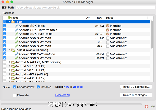 Android SDK(软件开发套件),随Android Studio软件包一起提供,其中不包括开始开发Android应用所需的一切。 SDK本身是一个实用程序,用于通过使用Android SDK Manager将您的工具,平台和组件分成软件包。
