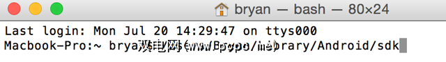 如果您需要从命令行使用Android SDK工具,则可以访问它们通过打开终端(应用程序>实用程序>终端)并使用以下命令: