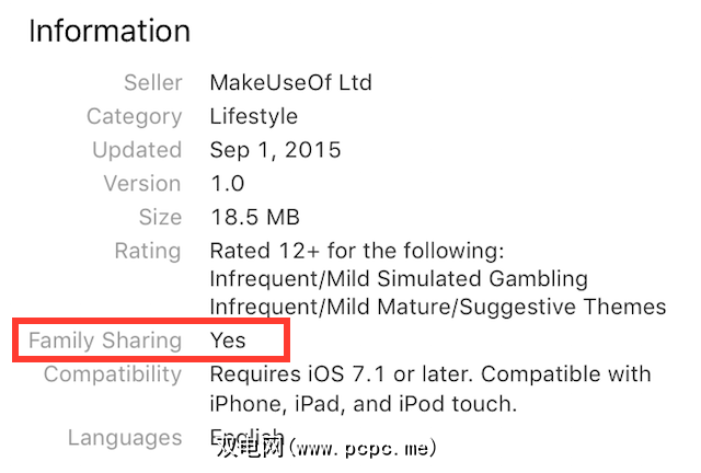 请记住:并非所有应用均可共享。如果您想在购买或下载应用程序之前查找信息,请在应用程序商店中搜索该应用程序,然后向下滚动至详细信息,您可以在其中查看是否可以通过家庭共享获得。例如,PCPC.me自己的iPhone应用程序可通过家庭共享获得。