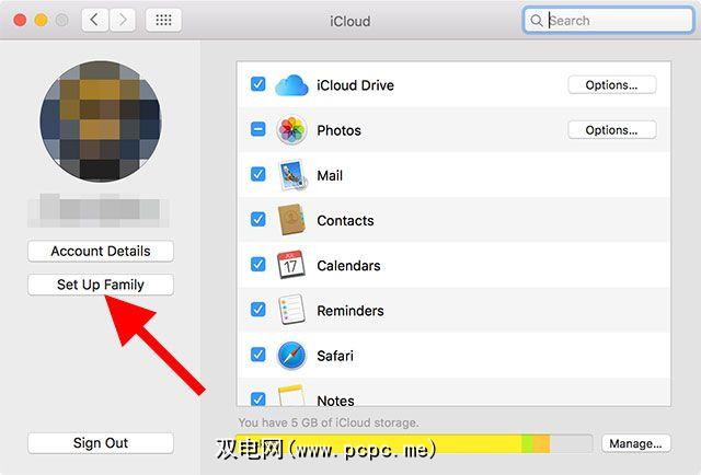 作为组织者,前往系统偏好设置> iCloud 并单击在出现的框中,在您的帐户信息旁边设置家庭。您现在可以使用其Apple ID添加成员,或为年轻人创建新的ID。