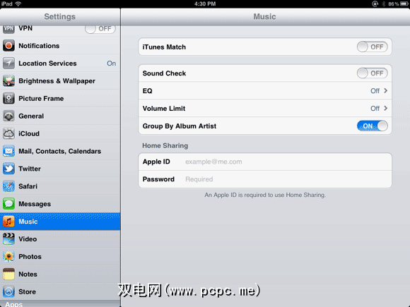 从设置->音乐菜单,从列表顶部启用 iTunes Match 。系统会警告您设备上的音乐已被iTunes Match取代。继续。