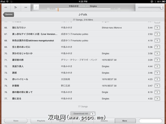 您可以像往常一样单击以播放歌曲,以流式播放歌曲(在开始播放之前,我有大约5秒钟的延迟)有时),也可以通过单击iCloud图标将它们下载到设备中。