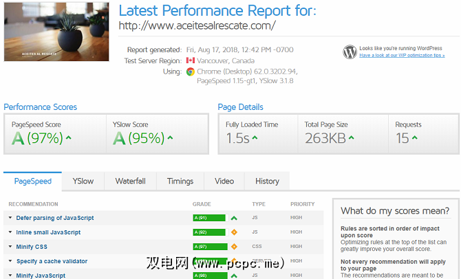 要检查您的页面加载时间是否受到影响,请使用第三方工具,例如GTMetrix或Google的PageSpeed Insights。