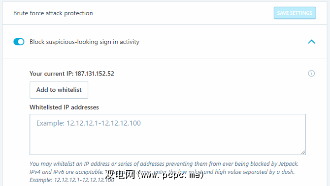 蛮力保护是一个简单的On / Off开关。如果出现故障,您可以使用下拉菜单手动将IP地址列入白名单。