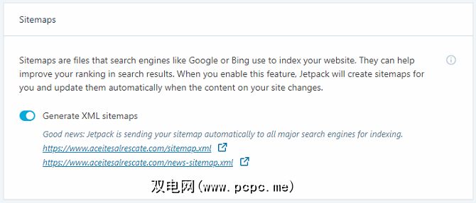 如果您使用其他插件(例如Yoast)来生成站点地图和验证码,则可以在Jetpack中禁用该设置。生成两个站点地图可能会导致冲突。例如,Yoast的Google新闻站点地图插件不会使用与Jetpack相同的XML地址。