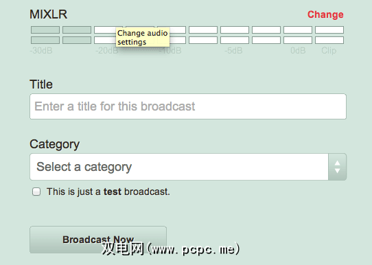 您将能够输入广播标题和类别;一定要说这是测试。然后,您可以立即播放广播,并等待您的忠实忠实支持者加入。