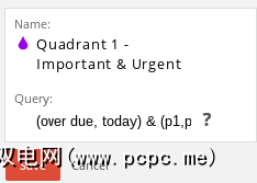 要捕获重要项目中的所有过期任务,请过滤:(今天到期)和(p:Bureaucracy | p:Errands | p:Freelancing)