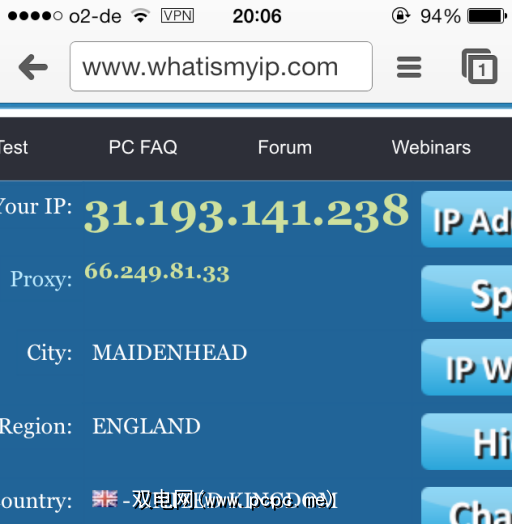 为了向您展示它的有效性,我在德国维尔茨堡。但是当我选择 United Kingdom 并进行连接时,我去了WhatIsMyIP,它说我住在英格兰的梅登黑德。