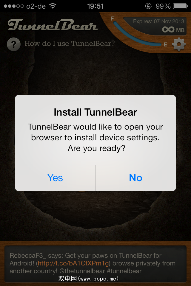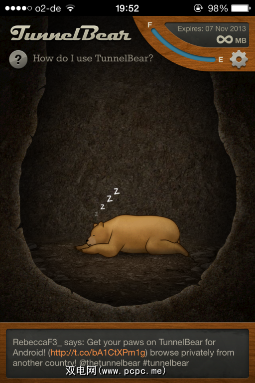 我今天要使用的VPN是Tunnelbear。毫无疑问,这是我最喜欢的VPN,过去我也毫不犹豫地说。它可靠,快速,可用于移动设备和平板电脑,提供最低限度的AES 128位加密,并且如果您愿意每月支付名义上的5美元,则可以享受无限的服务(免费用户每月只能获得最初的500MB ,然后每月额外增加1GB的空间-只有在他们在Twitter上发布有关该服务的推文之后。)