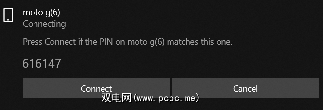 要连接设备,请单击其名称。如果是第一次连接到设备,则可能必须进行验证程序。这涉及确保Windows计算机上的PIN码与您要连接的设备上显示的PIN码匹配。
