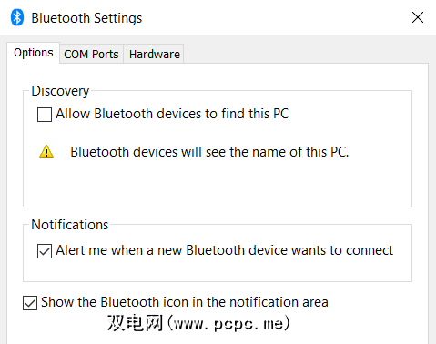 选择选项标签,您会看到可以调整的蓝牙设置: