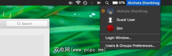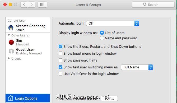 您还可以在登录选项下启用快速用户切换菜单。这使您可以从菜单栏在用户帐户之间切换。