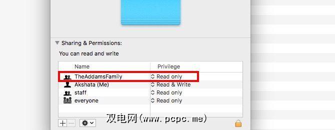 现在,对于Finder中的任何文件(或文件夹),您都可以分配读取权限从文件的检查器对话框(文件>获取信息)明智地-write权限组。