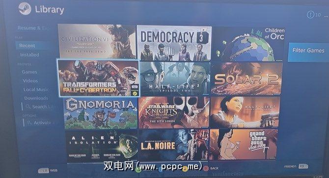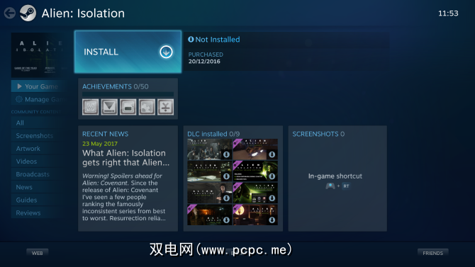 还可以使用其他两个屏幕:“ Web"和“ Friends"。使用这些浏览器从电视浏览您喜欢的网站,并查看Steam朋友的工作。