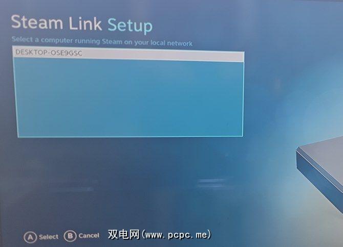 下一步,Steam Link将在网络上寻找您的PC。确保Steam在您的计算机上运行-最小化它并不重要。在电视上,Steam Link应该可以找到您的PC。使用您之前连接的任何输入设备进行选择,然后单击 A 。将显示一个PIN码,供您在PC上输入。记下这一点,在您的计算机上最大化Steam并输入PIN。