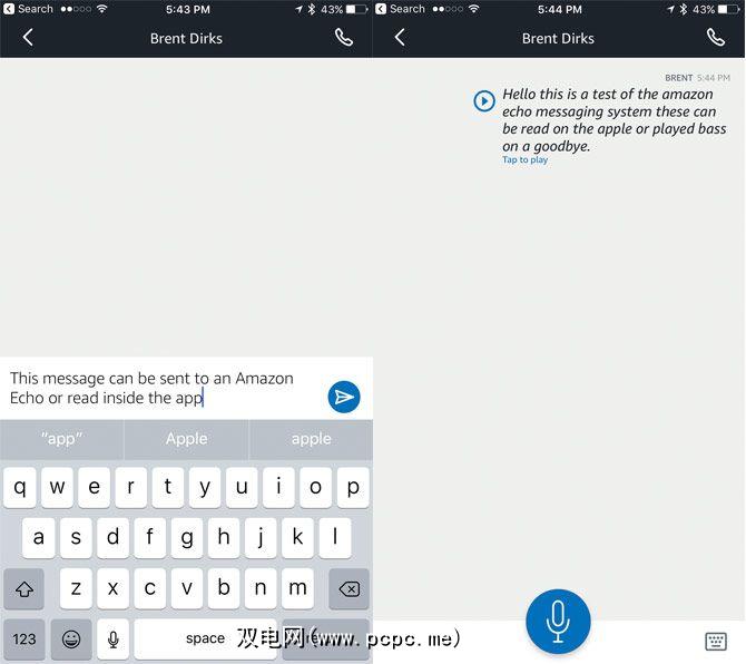 使用该应用程序,您还可以简单地键入一条消息并发送另一条消息回声用户。您可以在智能手机上查看它,也可以在任何Echo设备上大声说出来。