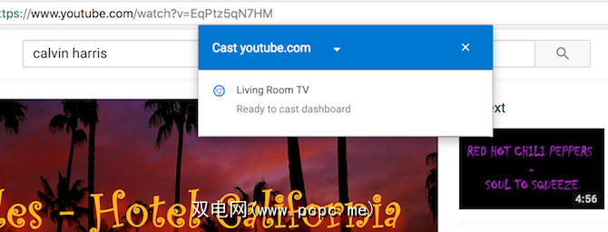 当您打开兼容的视频播放器(与Chromecast位于同一Wi-Fi网络时)时,您会看到“投射"图标在视频播放器本身中单击它,选择您的Chromecast,然后播放将切换到电视。您可以使用网页来控制播放。