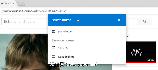 Chrome浏览器会询问您是否要投射整个屏幕,应用程序或标签页。然后,选择您附近的Chromecast,您就可以参加比赛了。