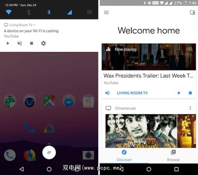 您现在可以锁定设备,媒体将继续播放。在Android和iOS上,锁屏媒体控件均可与Chromecast配合使用。在Android上,您也可以控制音量。因此,如果您想快速暂停播放,只需在锁定屏幕上按暂停按钮即可。