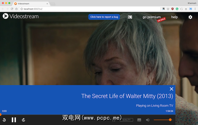 一旦安装了该应用,请启动Videostream,打开视频并选择Chromecast作为输出。现在,您可以将PC放在一旁,并使用Videostream的移动应用控制手机的播放。