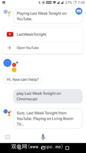您可以在手机上使用Google Assistant来控制Chromecast。说出类似“在Chromecast上播放今晚的上周"之类的内容,然后过一两秒钟,Chromecast将开始播放“上周今晚" YouTube频道中的最新视频。默认情况下,此功能适用于YouTube。连接帐户后,您也可以将其用于Netflix。