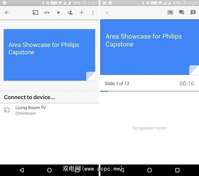 通过Google幻灯片,您可以非常轻松地将演示文稿从手机直接投射到电视上。中间不需要PC。打开Google幻灯片应用,选择演示文稿,然后点击“投射"按钮。该演示文稿将显示在屏幕上,您的Android手机将成为该演示文稿的控制面板。您可以滑动以在幻灯片之间切换。