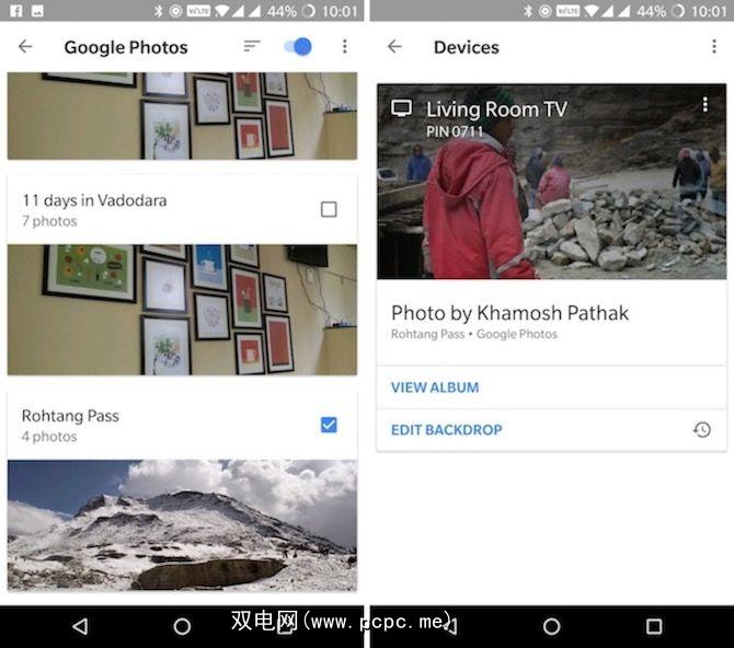 点击Google相册,选择要添加的相册,然后打开Google相册功能。现在,您会看到您的照片将定期在Chromecast上循环播放。