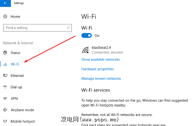 然后单击网络和互联网,然后从菜单中选择 Wi-Fi 在左侧: