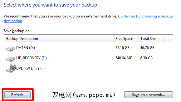 您需要备份介质。理想情况下,这是外部硬盘驱动器或网络驱动器,但也可以是计算机中的第二个硬盘驱动器或分区。无论选择哪种介质,它都需要足够的可用空间来保存备份。
