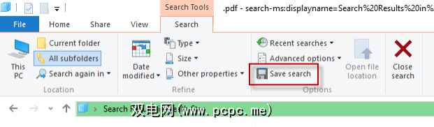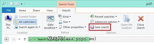 搜索完成后,转到顶部的菜单,然后单击 Search 标签。在那里,您将看到一个保存搜索的选项。