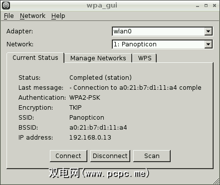 选择您要使用的网络想要连接,请在“ PSK"字段中输入密码,然后单击连接。在几秒钟内,您的Raspberry Pi应该已经无线连接,您可以拔下以太网电缆。