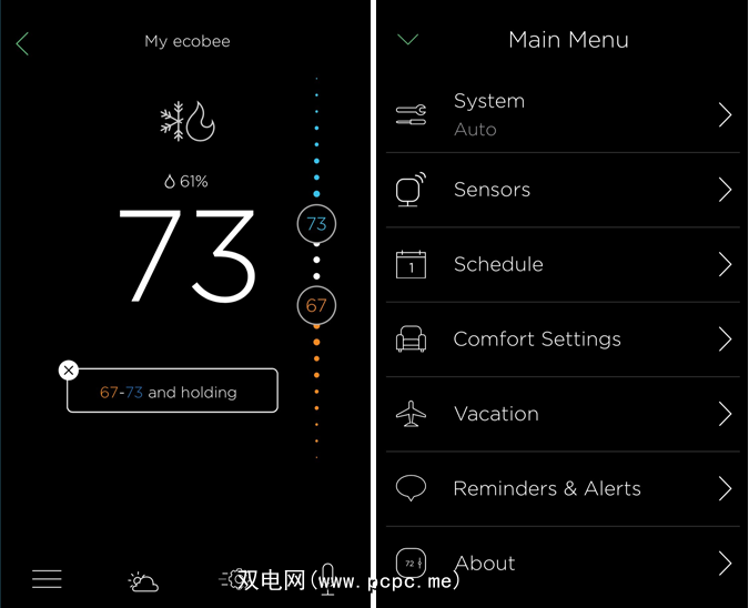 Ecobee应用程序的一大功能是几乎没有学习曲线。启动智能手机应用程序后,您将选择特定的恒温器。然后,您会注意到,该屏幕与自动调温器上的屏幕完全相同。