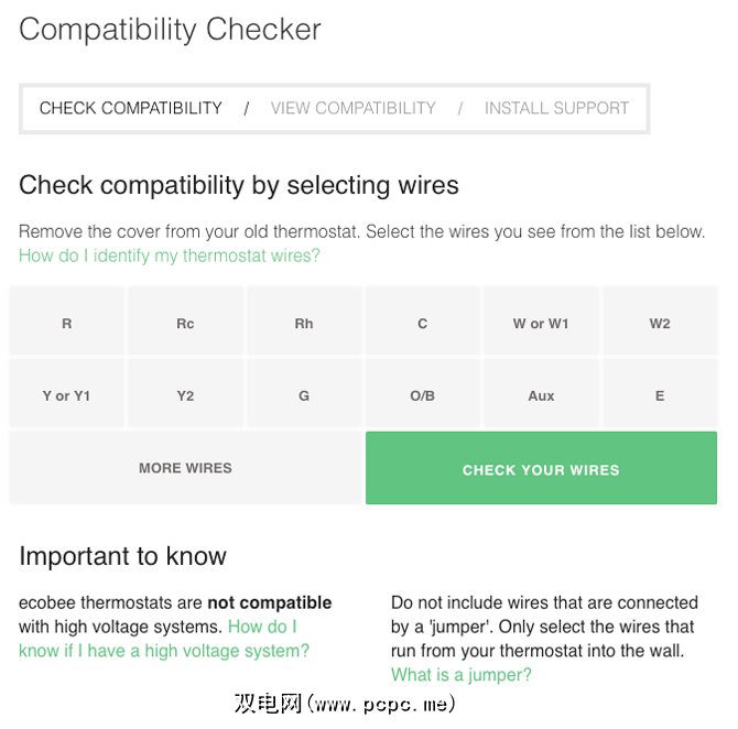 使用在线工具,您可以选择设置中看到的特定电线,Ecobee会告知您是否Ecobee4与您的系统兼容。好消息是,现有系统的95%应该可以正常工作。