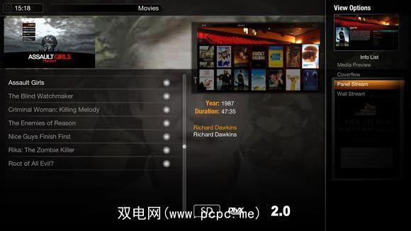 “电影和电视"菜单选项实际上不需要太多解释,除了可以将视图样式更改为通过在键盘或遥控器上选择“右键"以显示视图选项,可以查看流程或网格视图(我个人最喜欢的视图):