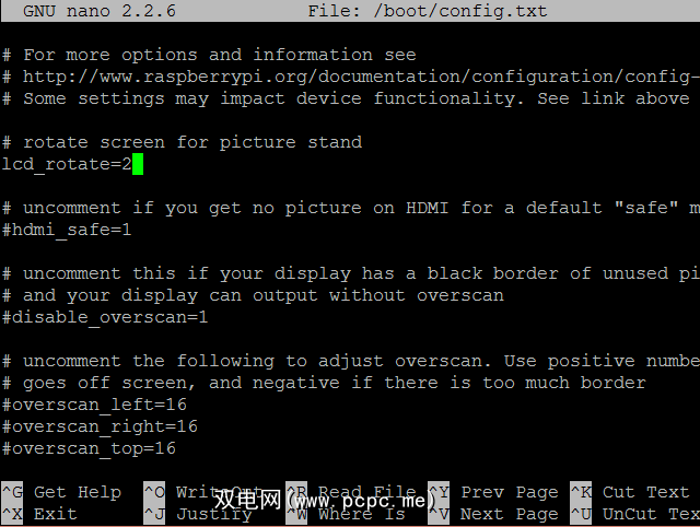 sudo nano /boot/config.txt在SSH上执行此操作,在文件顶部,输入新行:
