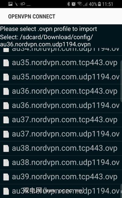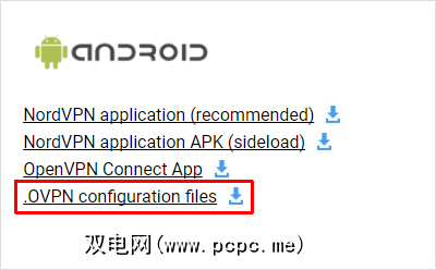 向下滚动直到找到Android部分,然后在其中找到 .OVPN配置文件。选择该链接将打开一个用于UDP和TCP连接的单个OVPN配置文件的长列表。