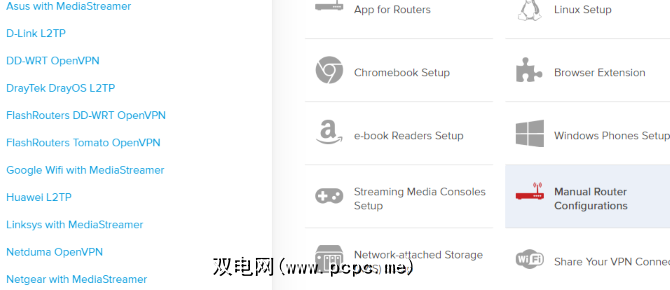 大多数大型VPN都将提供教程,以将其VPN安装在几种不同类型的路由器上。例如,ExpressVPN整节介绍了手动路由器配置: