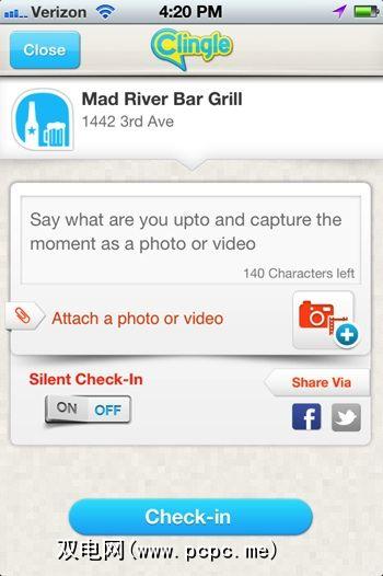 Clingle与其他签到应用程序的不同之处在于,将视频包含在签到中。我喜欢Foursquare和Oink等应用程序的一件事是能够将照片添加到签到中,这确实增加了体验,并帮助用户向他们展示他们所访问的地方,正在从事的活动的一些信息,以及他们看到的东西。根据Clingle的说法,“ 这是有史以来最好的签到方式!"