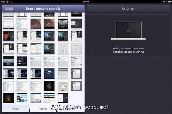 与到目前为止文章中介绍的其他应用程序一样,可以看到使用Instashare的其他客户彼此。这样,您就可以通过拖放魔术在iOS设备之间或在两台Mac之间共享文件。您可以通过Instashare访问设备的照片胶卷,并在共享之前选择多张照片,这使将照片无线共享到外部计算机变得异常容易和快捷。