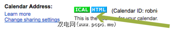 要将人们吸引到您的日历中,请单击日历旁边的箭头,然后单击日历设置。 在“日历地址"部分下,您会看到两个图标。