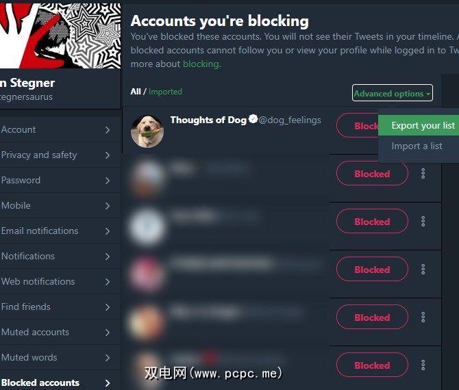 在Twitter上,您可以逐个阻止帐户,但该网站还允许您导出自己的帐户拥有自己的阻止列表并从其他人导入阻止列表。如果您想与朋友屏蔽相同的帐户,则可以节省时间。
