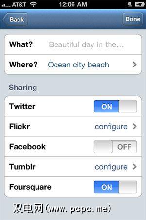 您必须共享照片的选项仅限于大型企业-Facebook,Twitter,Flickr,Tumblr,如果您有位置集,FourSquare。他们可以进一步扩展这些功能-当然,共享选项没有照片共享大型应用程序Pixelpipe那样多。话虽这么说,但保持选项简单确实有一个好处:界面简洁且易于使用。