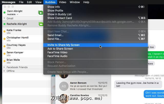 如果双方都设置了iCloud,就可以开始了。想要共享其屏幕的人只需双击其联系人列表中的其他人以打开聊天,然后转到好友>邀请共享我的屏幕。